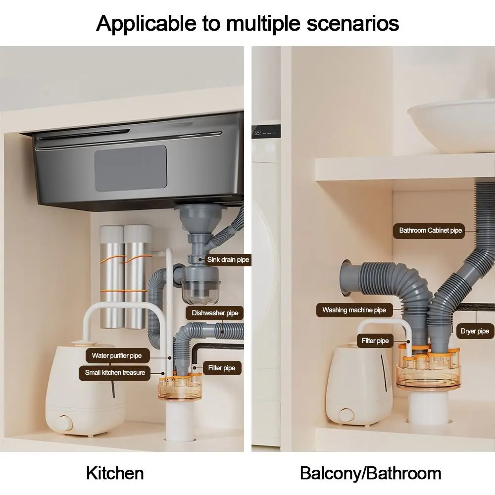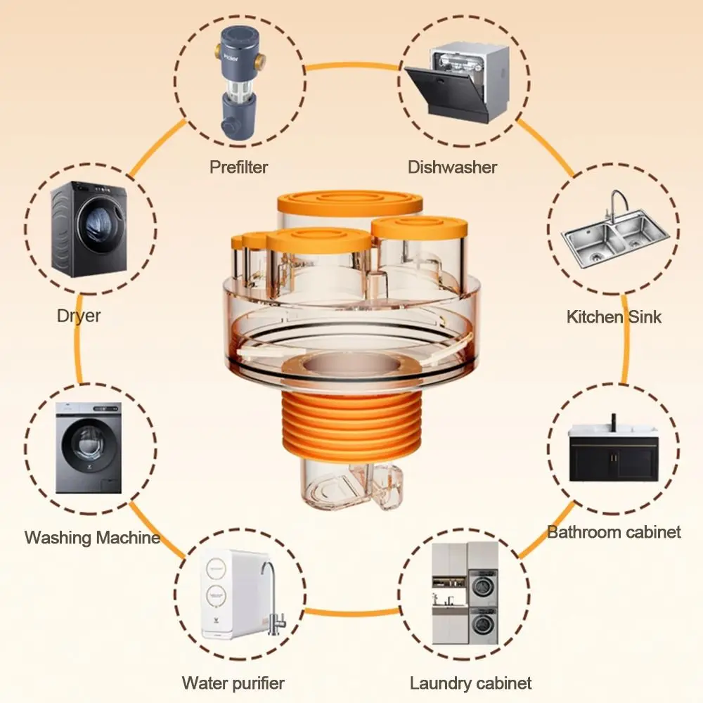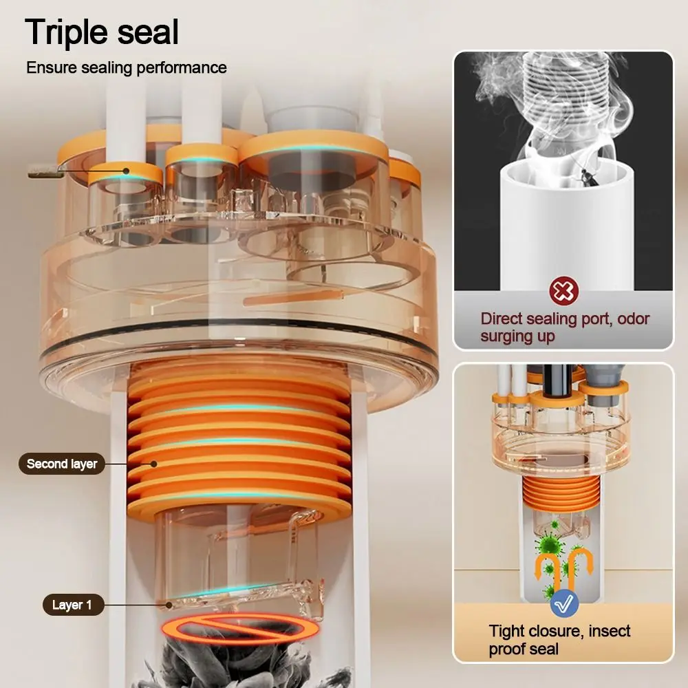Anti odor Sink Drain Pipe Adapter Sealing Ring Multifunctional Dishwasher Water Pipe Connector 5 in 1 Kitchen Basin Sewer Branch
